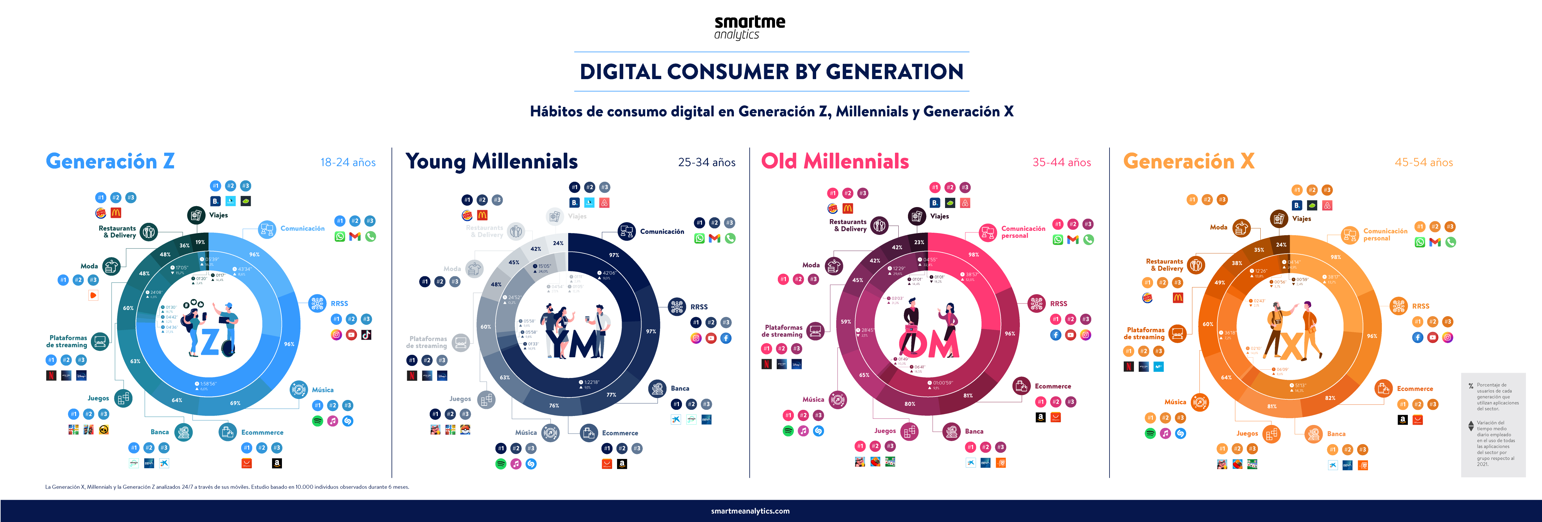 El informe arroja el TOP 5 de las marcas más relevantes para cada generación de los siguientes sectores: Comunicación, Redes Sociales, Plataformas de Streaming, Ecommerce, Banca, Moda, Música, Juegos, Restaurants & Delivery y Travel.