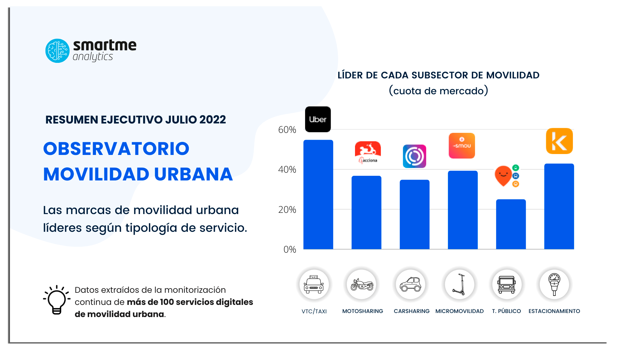 Accede a nuestro Observatorio de Movilidad Urbana, un servicio consultivo que ya cuenta con el seguimiento de más de 100 marcas de movilidad urbana gracias a la monitorización en tiempo real de miles de consumidores del sector, para conocer la evolución de la adopción de los distintos tipos de servicios así como el rendimiento de las principales compañías que lideran el mismo.