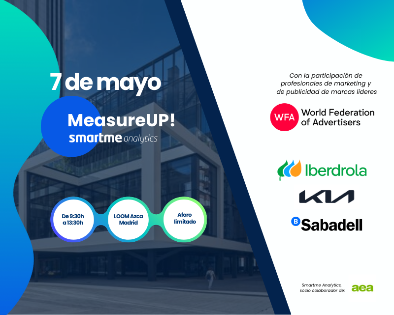 Llega MeasureUP!, el evento imprescindible para quienes lideran el cambio en marketing, medios y publicidad. Organizado por Smartme Analytics, reunirá el próximo miércoles 7 de mayo en Loom Azca (Madrid) a los principales responsables de inversión publicitaria del país. Un evento donde no se habla de tendencias: se marcan.