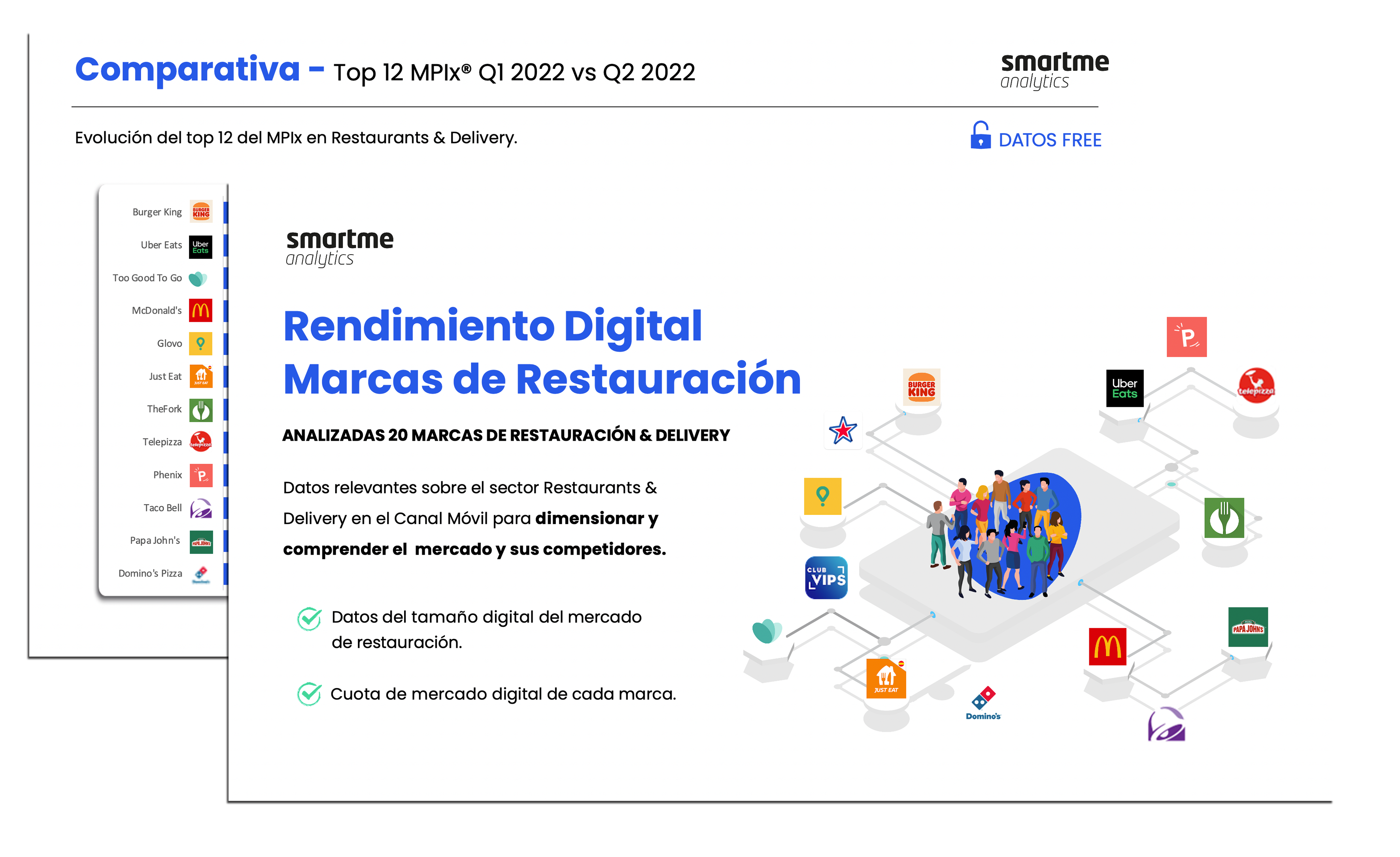 El Índice MPIx (Mobile Performance Index) puntúa las aplicaciones por sector del 0 al 100 en base a un algoritmo que utiliza los millones de datos registrados en tiempo real en base a una muestra representativa de 12.600 usuarios monitorizados mensualmente a través de tecnología que observa de forma pasiva y bajo consentimiento las huellas digitales de clientes de servicios de restauración y delivery.